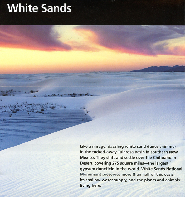 3/30 Tu – arrive at White Sands NP in south-central NM about 7:30am. In 2019, it was upgraded from a National Monument to a National Park