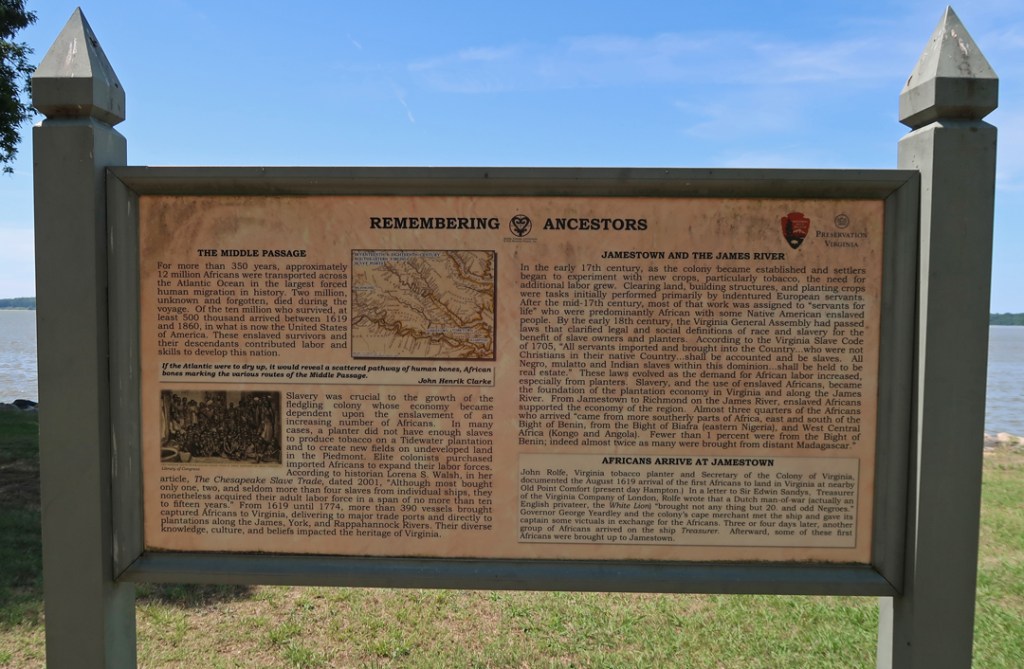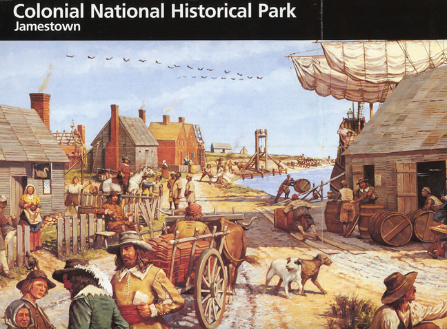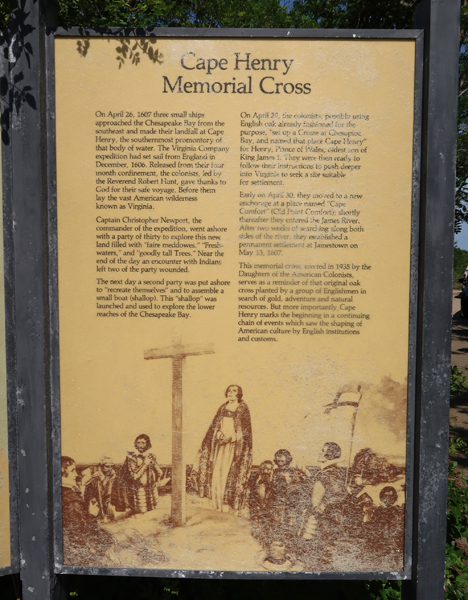 The first permanent English settlers landed here on April 26, 1607. A memorial cross has been placed here by the National Society Daughters of the American Colonists.