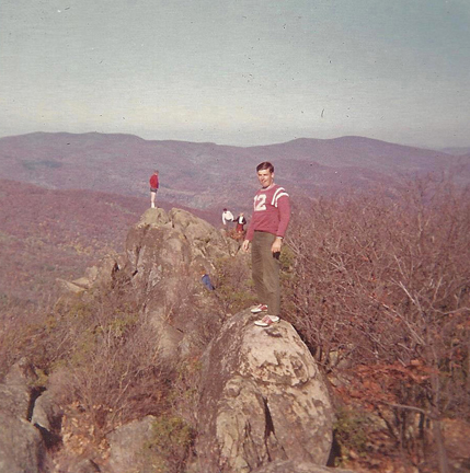 We climbed Old Rag with Jay and other graduate assistants from the east side of the mountain in the Spring of 1968. We took the Ridge Trail for about 1.5 miles and then set up camp along the trail. The next morning, we summited and then returned to U of MD. This hike/climb is about 5 miles roundtrip with a gain of 2400 feet and involves a lot of fun rock scrambling on the top third of the route.