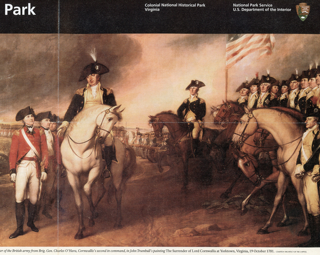 On October 19, 1781, Cornwallis’s army surrendered. In this John Trumbull painting, Maj. Gen Benjamin Lincoln accepts the surrender of the British arm from Brig. Gen Charles O’Hara, Cornwallis’s second in command.