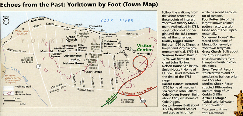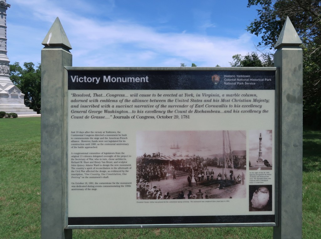 This sign, a short distance from the NP Visitor Center is close to Yorktown and is the first stop on a 7-mile loop road that takes you through the British inner Defense Line and the Allied (American and French) siege lines.