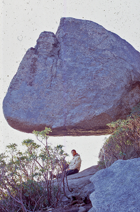 In this 1988 photo, I am standing on the observation platform surrounding the old 25-foot stone tower that was built on the summit in 1959.