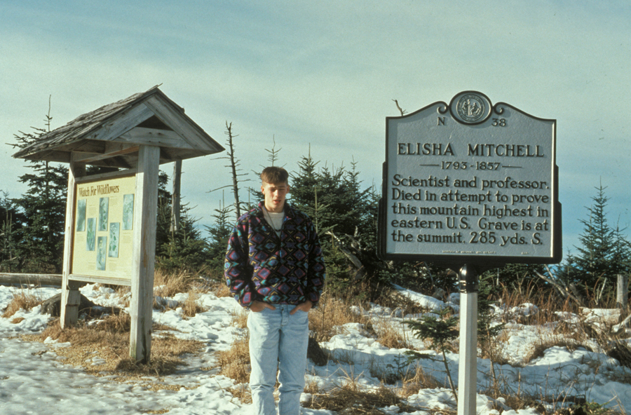 The current circular observation platform is the fifth structure to crown the summit of Mount Mitchell. The first was an obelisk erected next to the grave of geographer Professor Elisha Mitchell (1793-1857) in 1888. He died in a fall on the mountain while attempting to prove that the Black Mountains were the highest peaks in the region and the eastern U.S. He proved, with measurement taken in 1838 and 1844, that Black Dome, the highest peak in the Black Mountains, was higher than Mount Washington (6,288ft) in NH. Black Dome was re-named Mount Mitchell (6,684ft), by the U.S. Geological Survey, in his honor in 1881-82.