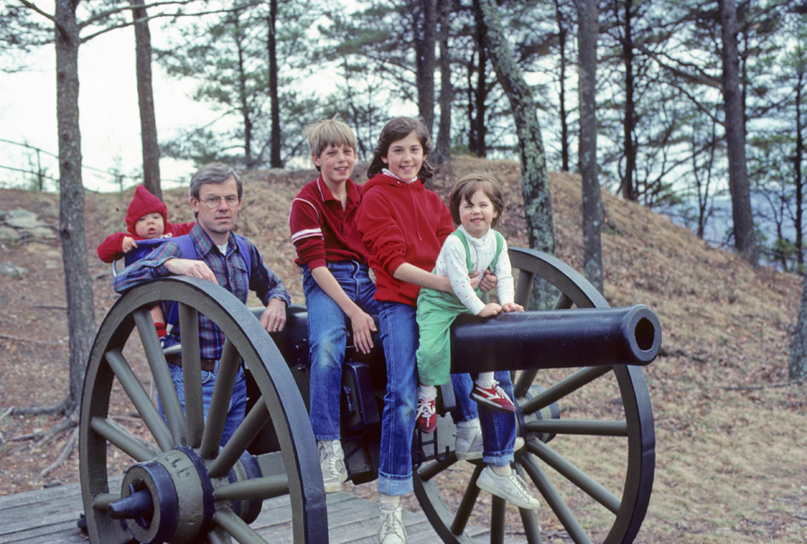 Kate is standing on the tri-state point in this photo from 1984, which was a short hike from Rt 25E when it ran directly through the Gap. In 1996 a tunnel was completed to bypass the Gap and the Gap was returned to a walking path – the original Wilderness Road.