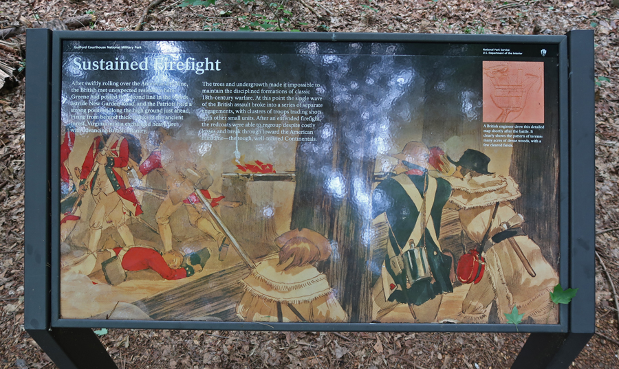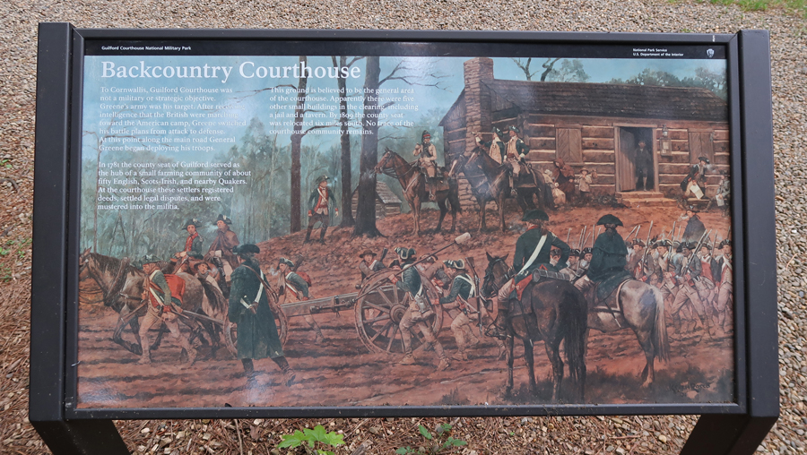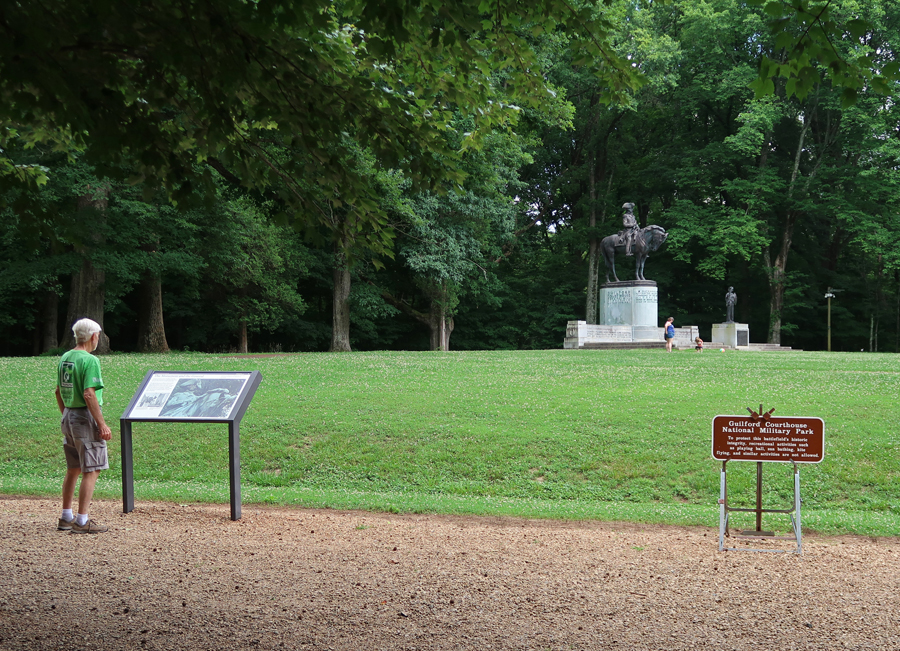 6hr drive to Guilford Courthouse National Military Park in NC – during my school history lessons, I learned a good deal about the northern battles of the Revolutionary War but relatively little about the southern battles. For example, there are three National Park Units in South Carolina devoted to the Revolutionary War – Ninety Six NHS, Cowpens NB, and Kings Mountain NMP. There are two in North Caroling – Moores Creek NB and Guilford Courthouse NMP.