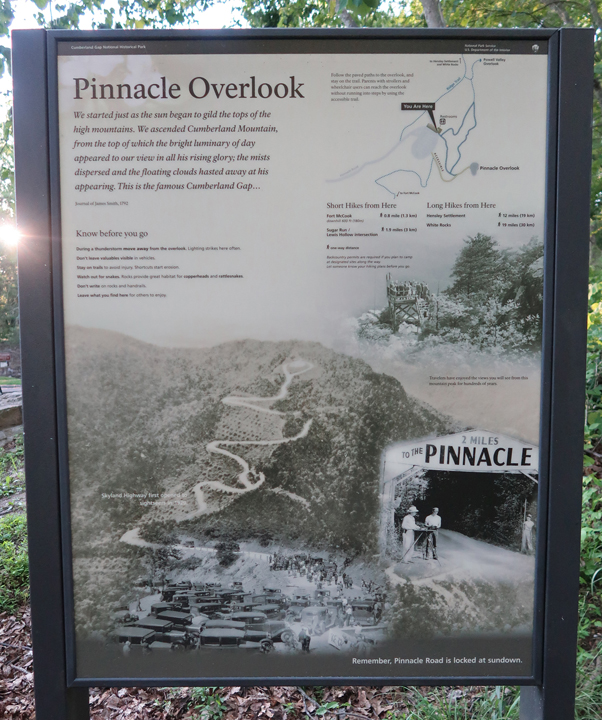 6/15 Tu – arrived at the Cumberland Gap National Historical Park Visitor Center about 6:30am and immediately took the road to the Pinnacle Overlook. This was my fourth visit to the park. On this trip, my objective was the Pinnacle Overlook, where there is a great view of the Gap and information related to the strategic importance of this location during the Civil War.