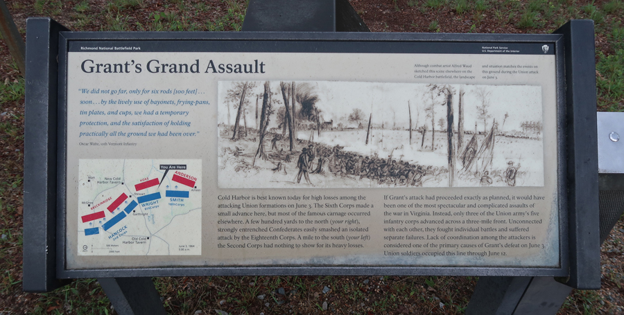 6/13 Sun – arrived at the Richmond NBP Cold Harbor Unit at about 6am. I visited the Richmond Unit at the Tredegar Iron Works in April 2017 (see Blog). On this trip I wanted to see the other four Units. All of these Units are related to the Battle for Richmond during the Civil War. However, I am starting this description of my visit with the Glendale Malvern Hill Unit in order to present the information chronologically.