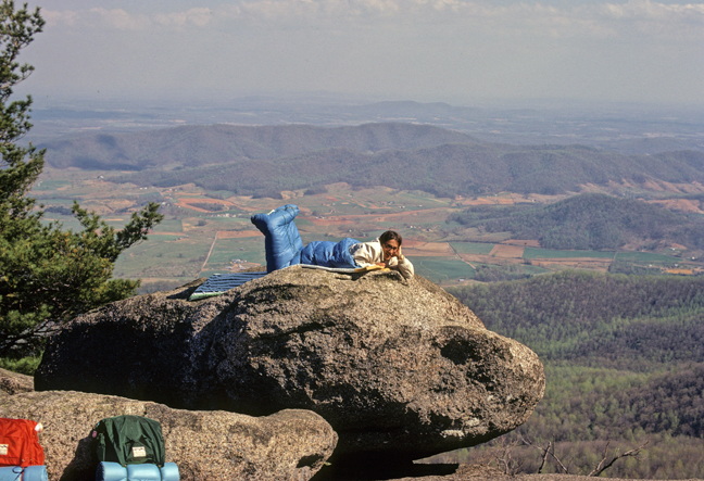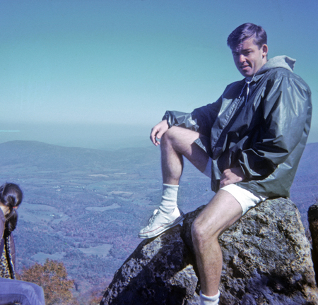 We climbed Old Rag with Jay and other graduate assistants from the east side of the mountain in the Spring of 1968. We took the Ridge Trail for about 1.5 miles and then set up camp along the trail. The next morning, we summited and then returned to U of MD. This hike/climb is about 5 miles roundtrip with a gain of 2400 feet and involves a lot of fun rock scrambling on the top third of the route.