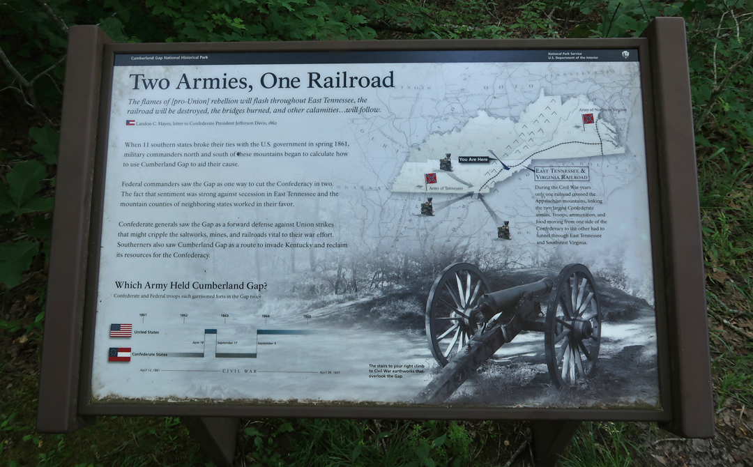 6/15 Tu – arrived at the Cumberland Gap National Historical Park Visitor Center about 6:30am and immediately took the road to the Pinnacle Overlook. This was my fourth visit to the park. On this trip, my objective was the Pinnacle Overlook, where there is a great view of the Gap and information related to the strategic importance of this location during the Civil War.