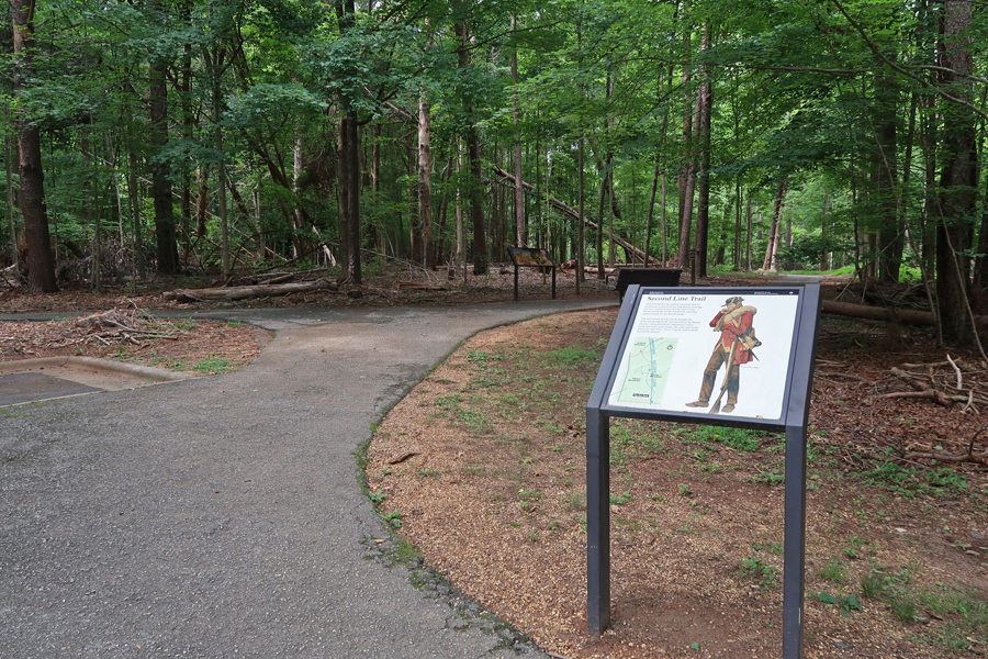 The Continentals, under General Nathaniel Greene, set up three defensive lines in this area (see map). The British, under General Charles Cornwallis, progressively attacked all three. The First Line Defense –