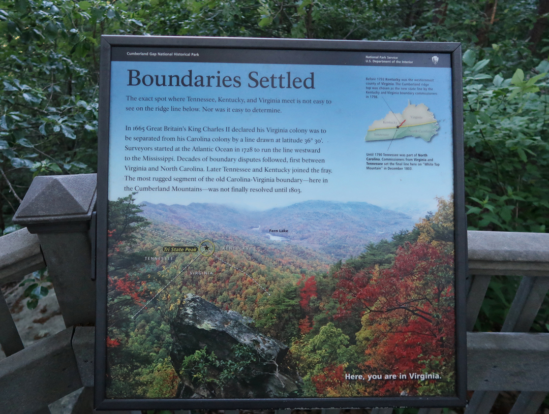 This is the 2016 KY state quarter – three states come together in the Gap – KY, TN, and VA. It was not until 1803 that the tri-state point was made official.