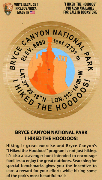 I successfully “Hiked the Hoodoos” covering about five miles over three trails – I took my photos to the ranger at the Visitor Center and received my award – a decal – made in the USA!