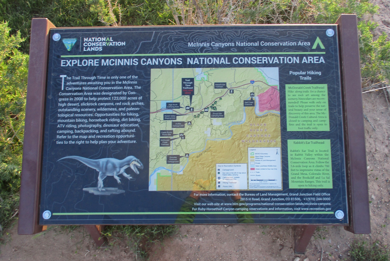 4/21 Th – 1.5hrs to McInnis Canyons National Conservation Area (MCNCA – BLM) in West Central CO on the UT border. It was previously called Colorado Canyons NCA and has the second highest concentration of naturally occurring arches in the world – behind Arches NP. Its 193 square miles includes a 24-mile section of the Colorado River. “View the fossils of 140-million-year-old dinosaurs at a working fossil quarry.” It has been proposed that this NCA become a National Monument.