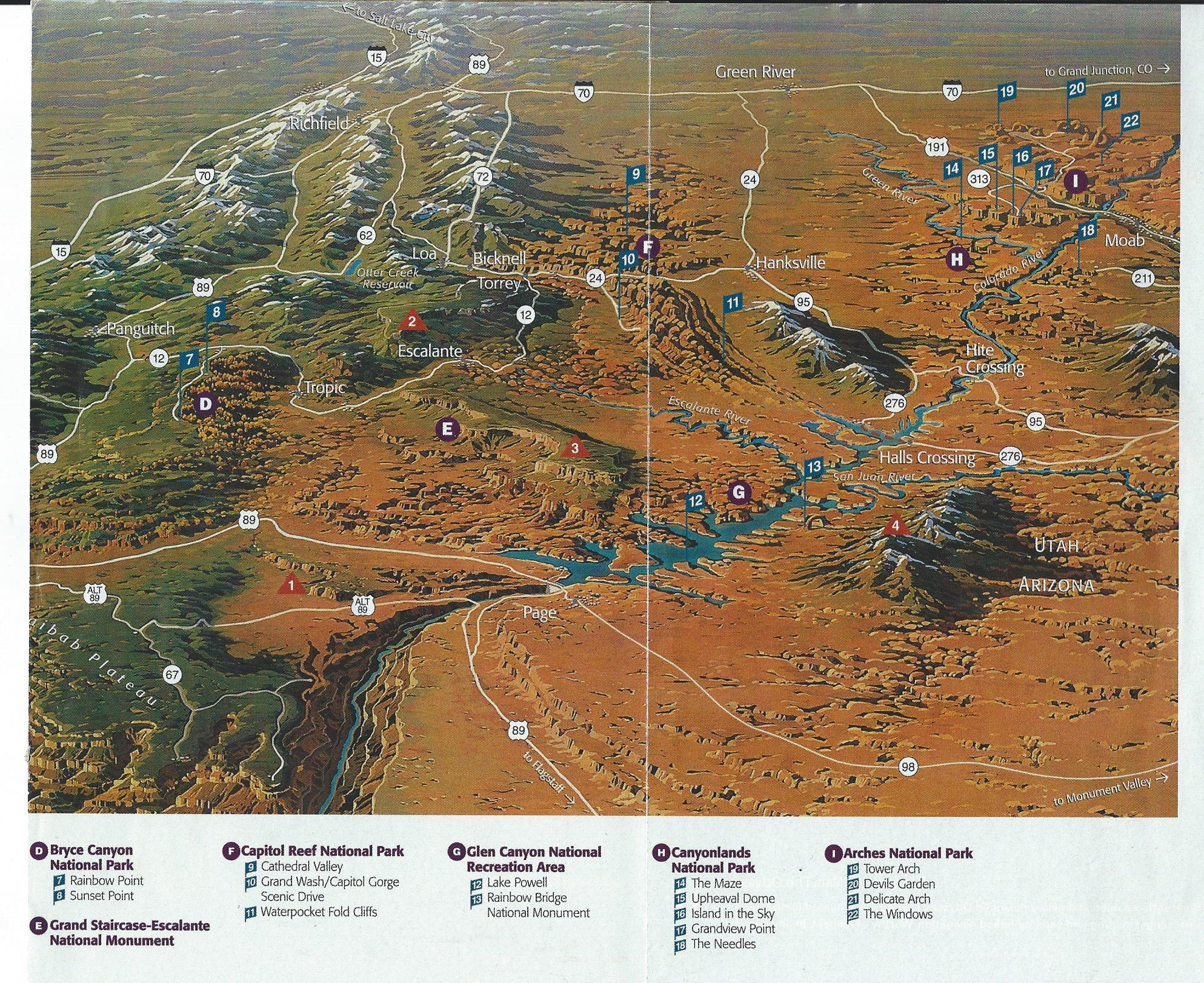It was a 535-mile drive to Bryce Canyon NP. Note the location of Bryce Canyon on the lower left of this map, and its relation to other protected areas in Southern Utah.