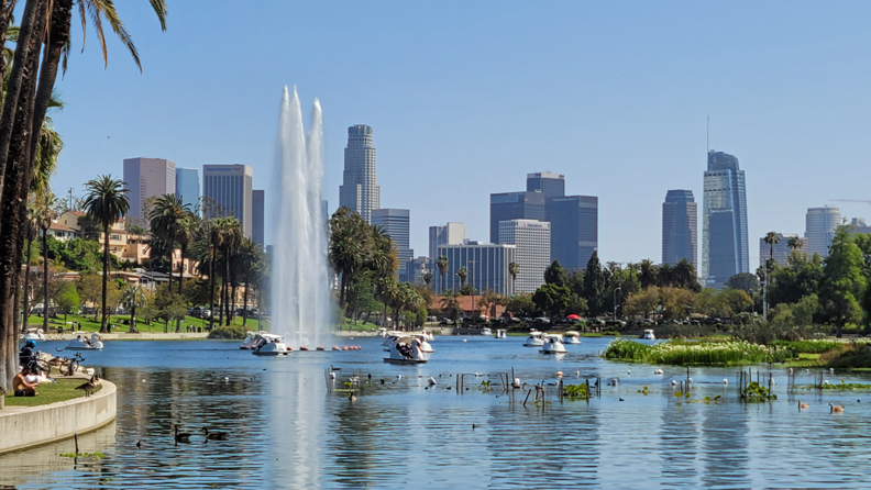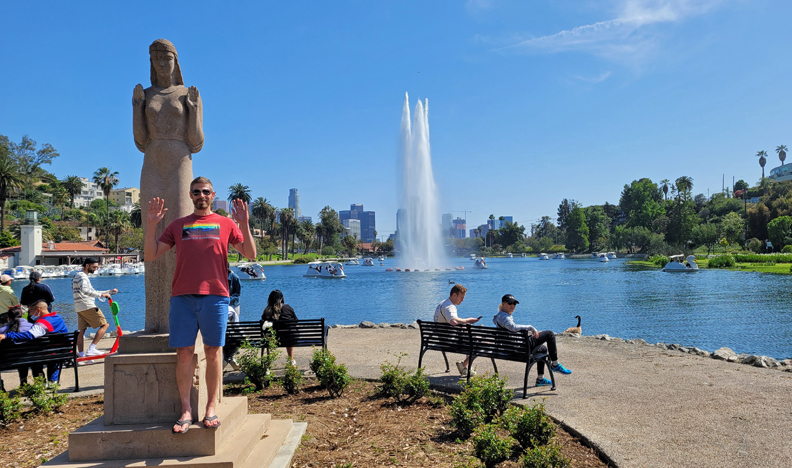 4/17/ Su Easter – returning from Easter Mass at St Francis of Assisi RCC, note Hollywood sign and Griffith Observatory in background