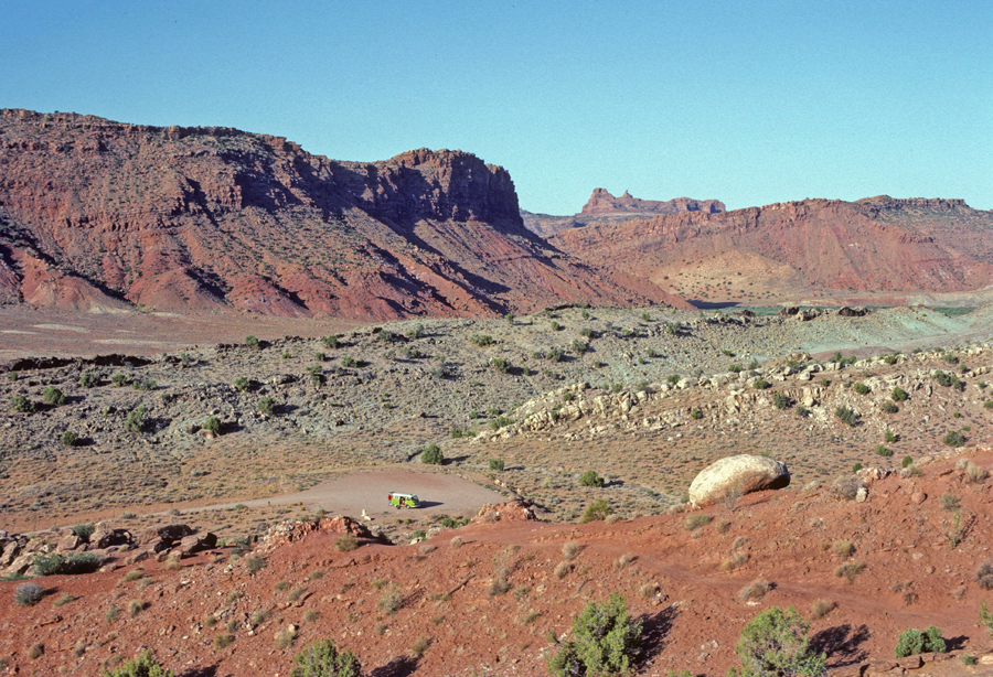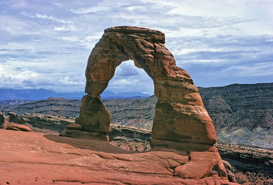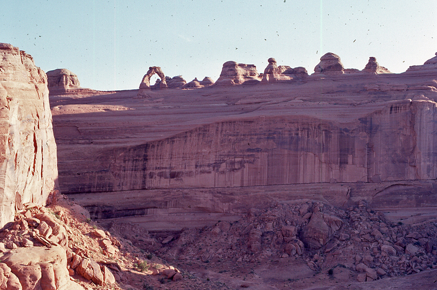 Half mile hike to Upper Viewpoint of Delicate Arch 1982, note VW Camper. We drove to LA and then flew to Hawaii on this family trip.