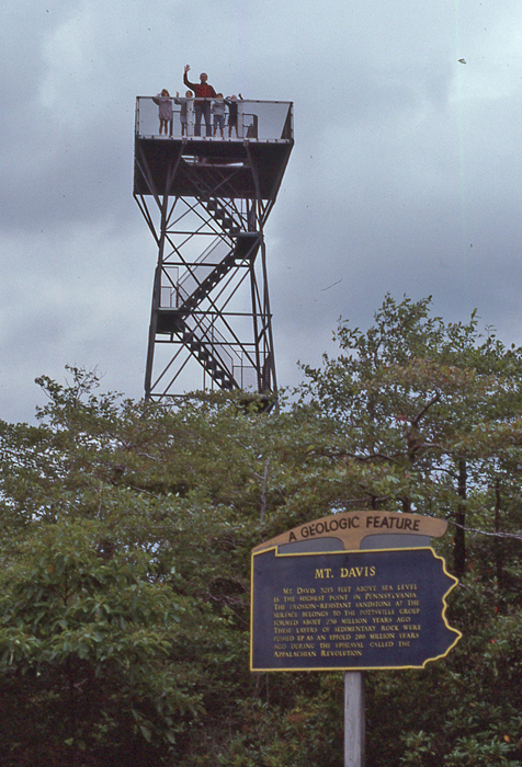 This was our second visit to Mount Davis – Highpoint of PA (3,213ft). Our first visit was in 1989 with Kate and Chad and their friends David and Jessica. Here we are on the tower – Helen took the photo.