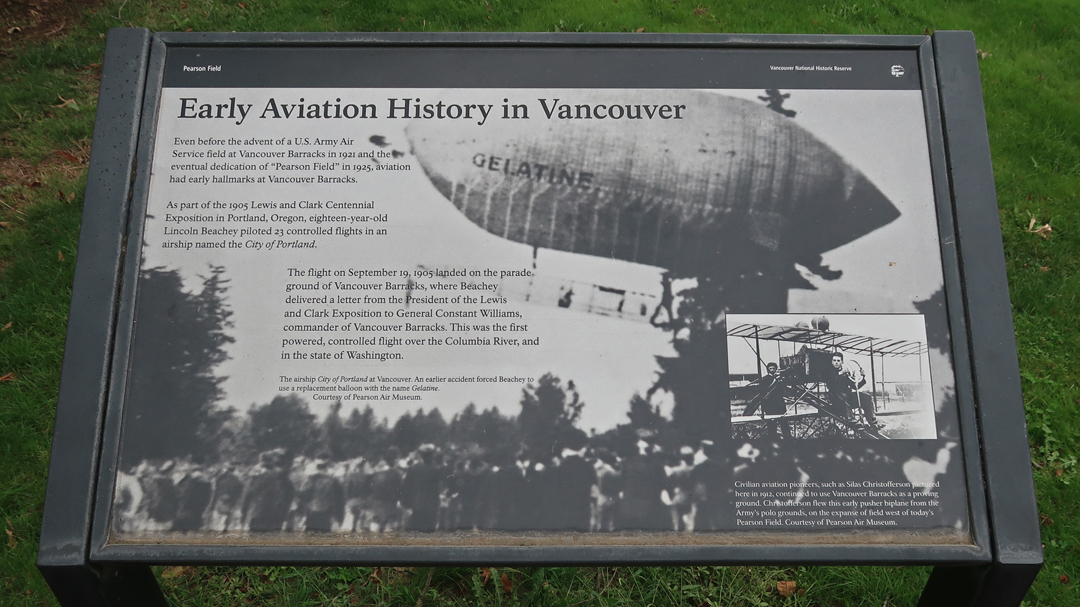 In the early 20th century, a polo field at Fort Vancouver was a place for aviation enthusiasts to try out their aircraft. During the 1905 Lewis and Clark Centennial Expedition in Portland OR, an airship named the “City of Portland” landed at Fort Vancouver.