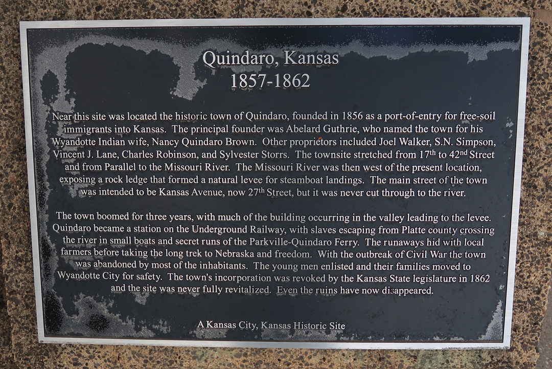 Quindaro was on the banks of the Missouri River below this overlook. The opposite side (east side) of the river was MO, a slave state.