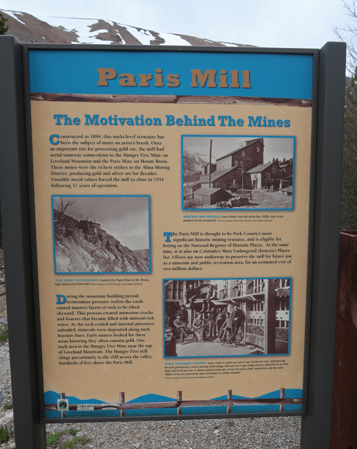 Our next stop was in Fairplay, in the center of the South Park NHA. South Park was one of the richest sections of the Colorado Mineral Belt. Intrusions of gold, silver, lead, and other minerals lead to extensive mining throughout the Mosquito Range.
