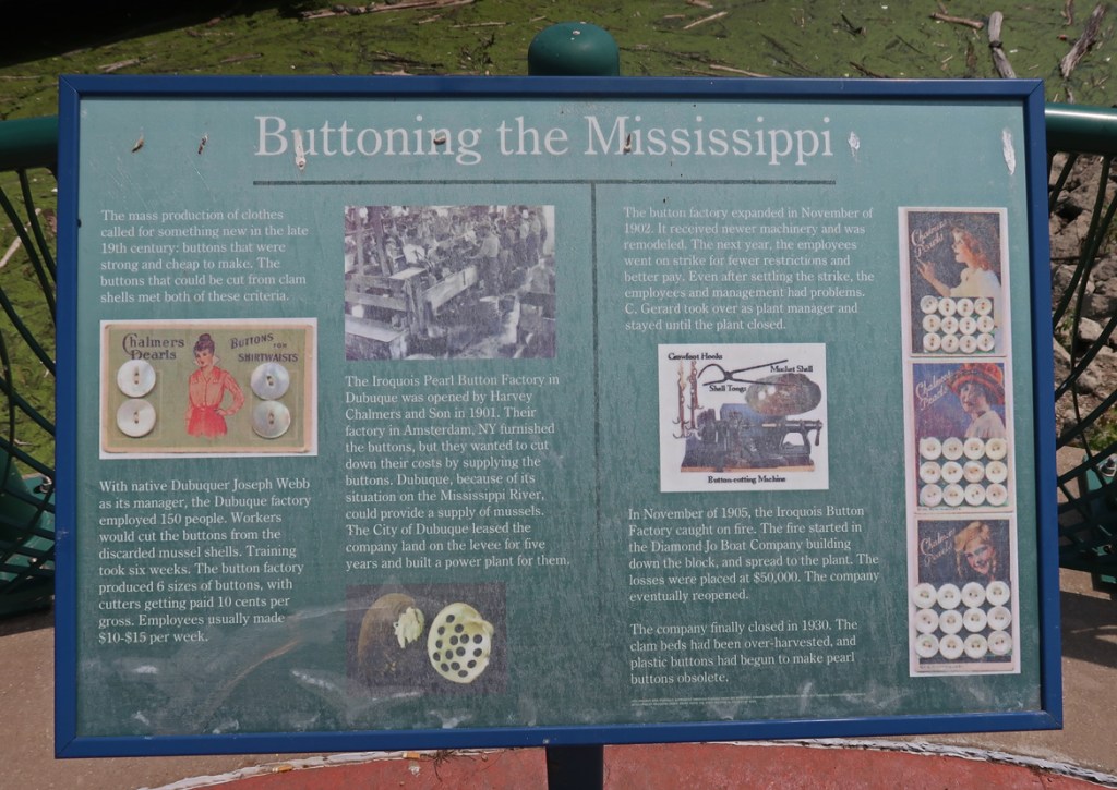 The Iroquois Pearl Button Factory opened here in 1901 and made “Mother of Pearl” buttons from river clam shells. It closed in 1930 when plastic buttons made them obsolete.