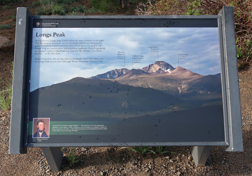 I had wanted to do a hike in Glacier Basin, however, I discovered that you needed a separate timed entry pass to get on the Bear Lake Road to that area! This photo, taken at the visitor center, shows the topography of the park –