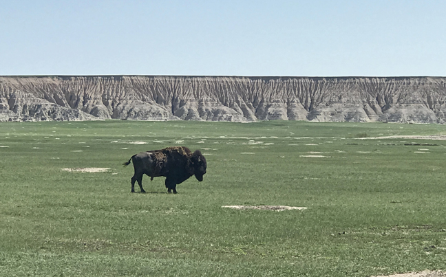 In the 19th century, the buffalo population was reduced to about 800 animals. Today, there are over 300,000 buffalo in the U.S. This photo was taken in the Buffalo Gap National Grassland, which includes Badlands NP.