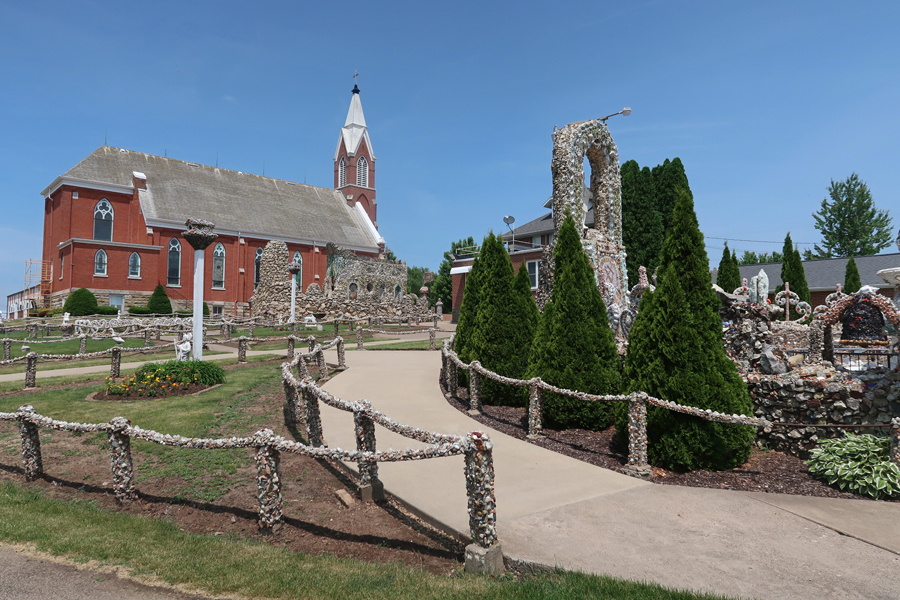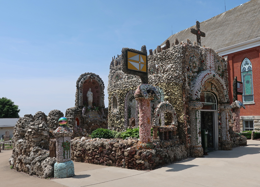 We drove through WI on our way to Dubuque IA and stopped at the Grotto & Shrines on the grounds of the Holy Ghost Parish Church in Dickeyville. It is known for its phenomenal stonework.