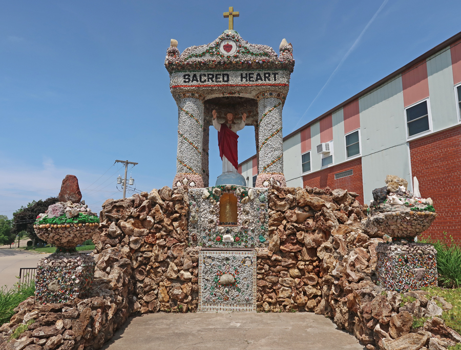 Fr. Matthias Wernerus, a German-American priest, constructed the following shrines during his 1918-1930 service to the parish. They were created out of stone, mortar, shells, glass, brightly colored materials, and objects collected from all over the world – Christ the King Shrine