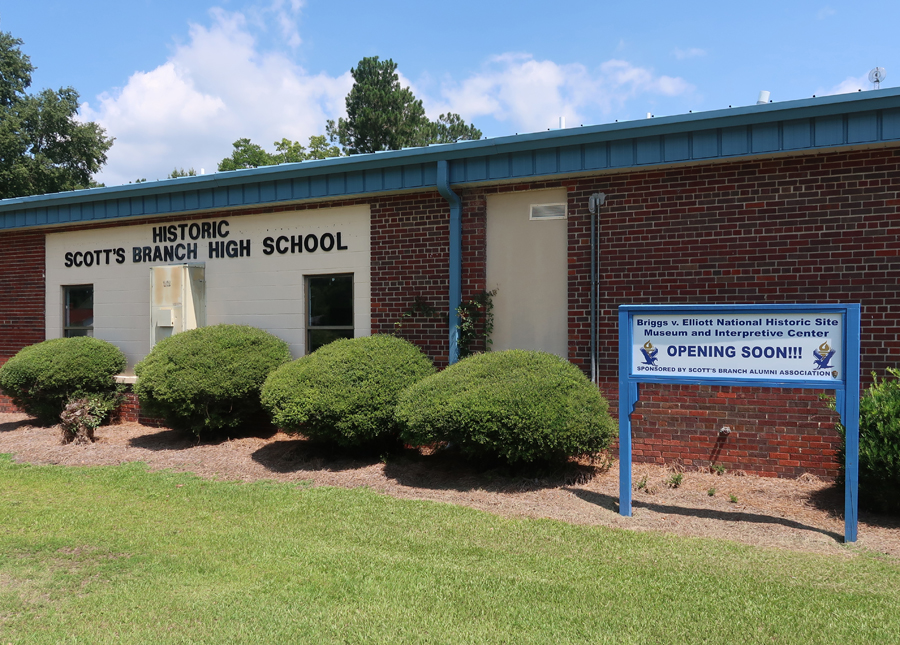Scott’s Branch High School, the former “equalization school” was constructed for African American students in 1951 under the guise of providing facilities comparable to those for white students. It is now a Community Resource Center owned by Clarendon School District 1.