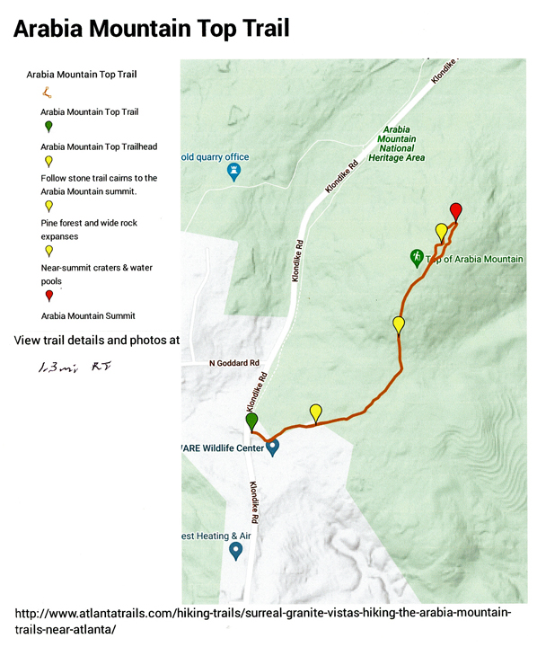 It was only a 15min drive to the AWARE Wildlife Center and the trailhead for hiking to the Arabia Mountain Peak (954ft).