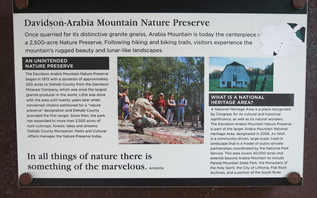 The Davidson-Arabia Mountain Nature Preserve is part of the Arabia Mountain NHA.