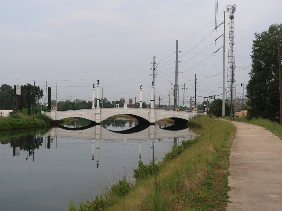 There were seventeen gates along the 51ft drop of the canal that powered cotton mills and other factories beginning in the late 1840s. During the Civil War, the Confederate Gunpowder Works were located on the canal. This is the Jefferson Davis Bridge and towpath trail along the canal –
