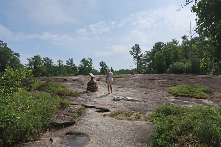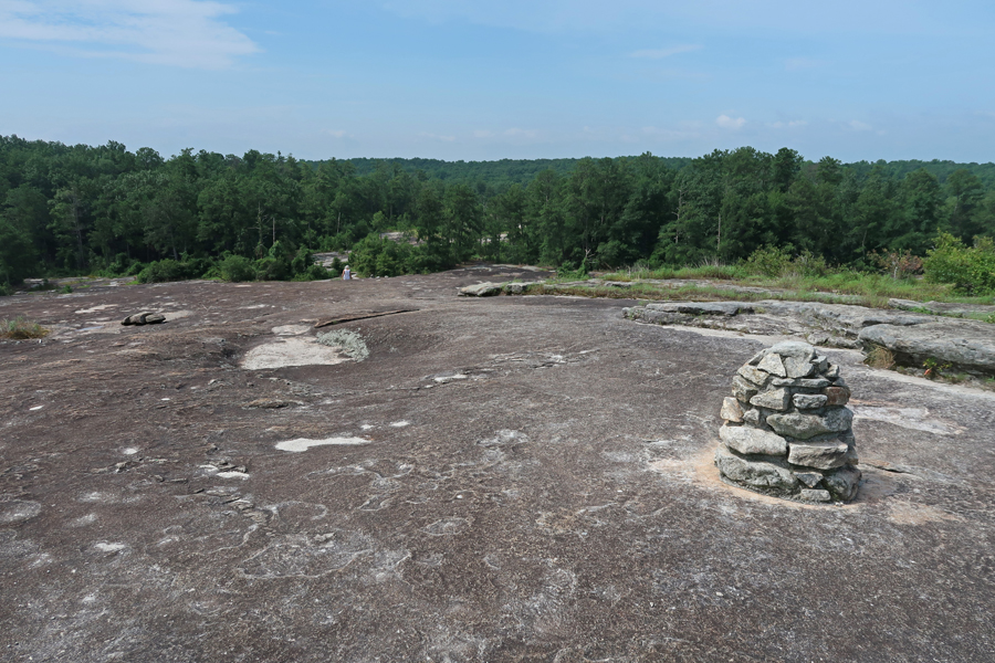 Arabia Mountain, Panola Peak, and Stone Mountain are all within 15-miles of each other and are “monadnocks.” Monadnocks are isolated hills or knobs of hard bedrock, formed by the erosion of the softer rock around them. The Native American word “monadnock” means smooth or isolated mountain. The granite gneiss of the mountain contains quartz, which makes it very hard. That explains the quarrying operations that took place in this area.