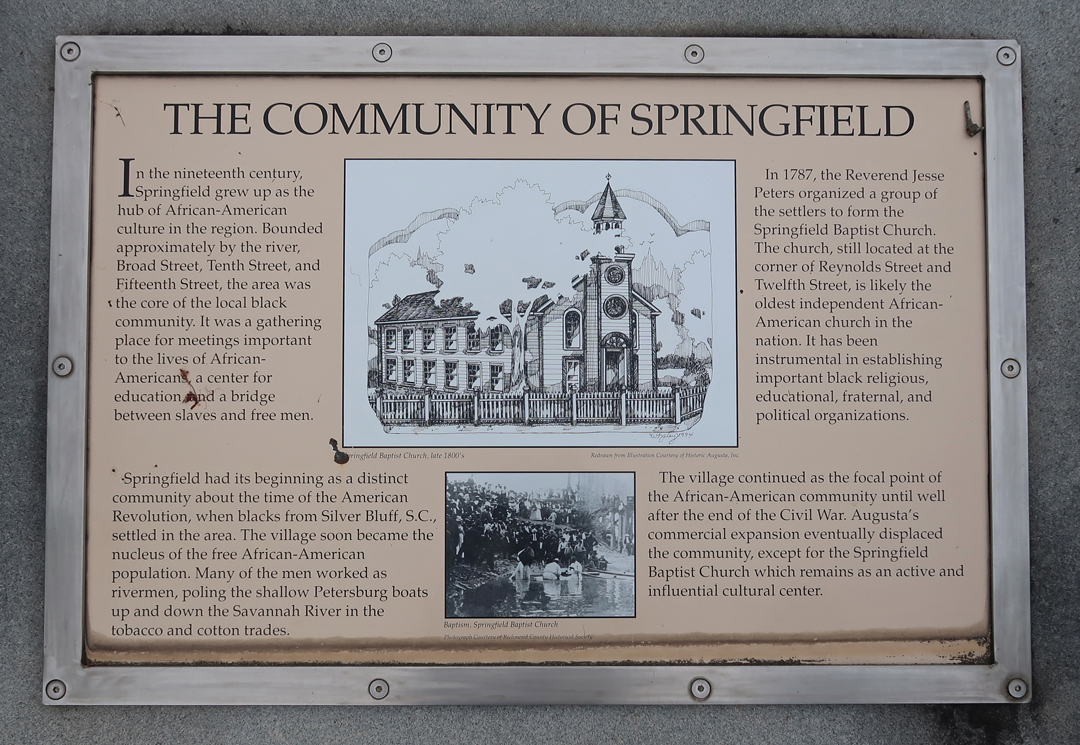 Strolling the downtown Riverwalk along the Savannah River, we found this information on the Community of Springfield –