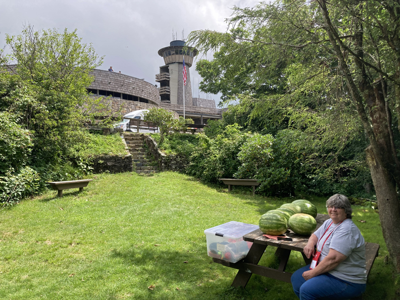 7/22 Sat – hiked in the SP and then drove to Brasstown Bald (4,794ft), the Highpoint of GA, for the traditional Watermelon Feast.