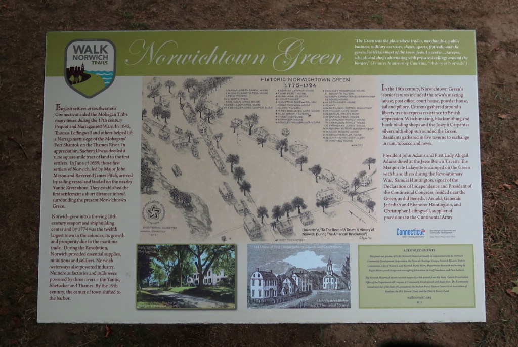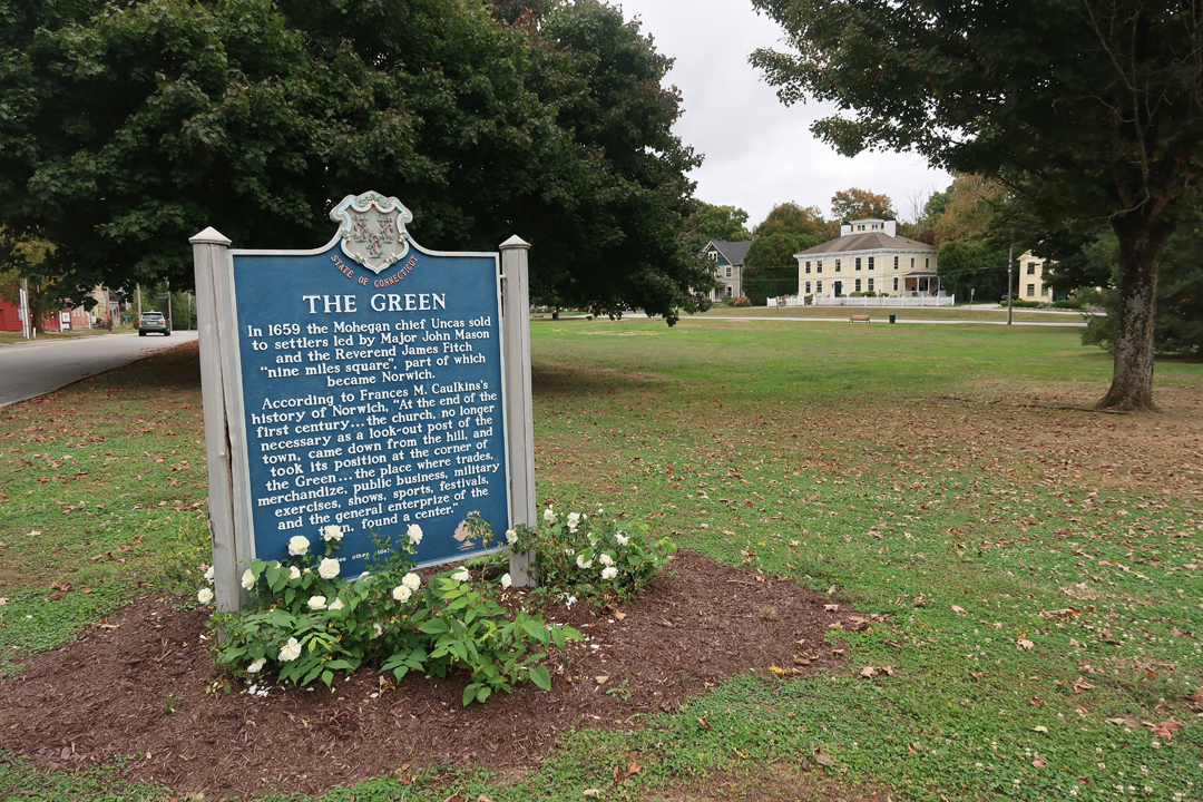 Norwichtown was settled in 1659 around this Green. “The Benedict Arnold Trail” which focuses on Norwich during the Colonial era and the Revolutionary War, begins at the Green. Benedict Arnold, one of America’s most notorious Revolutionary War traitors, called Norwich home. A two-mile trail passes the family homestead, Leffingwell Inn, and Olmstead-Lathrop Manor (1600s).