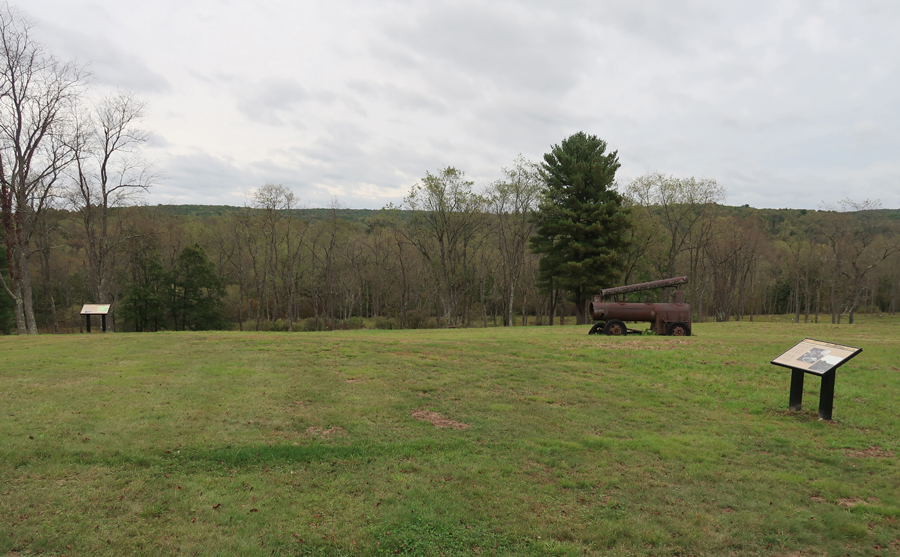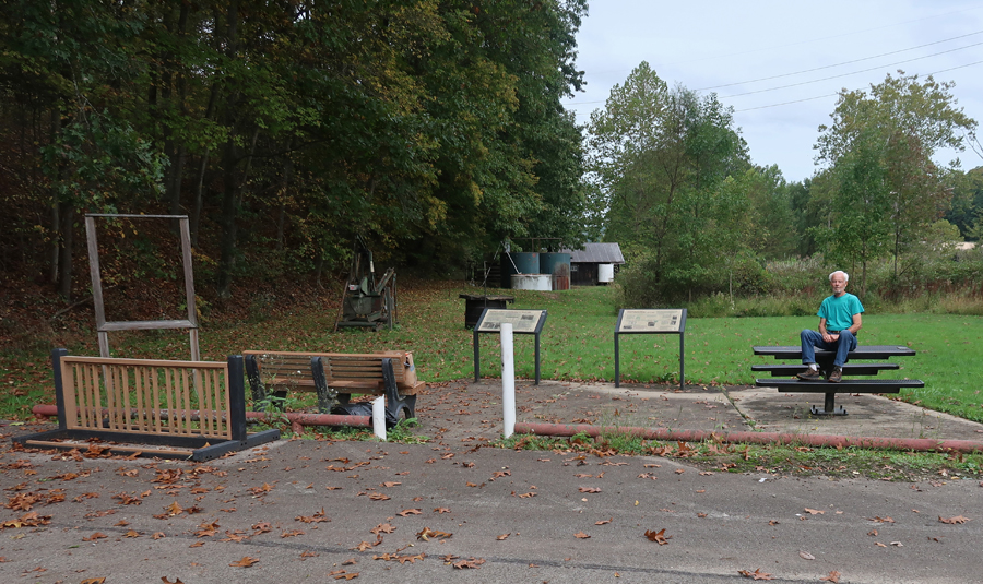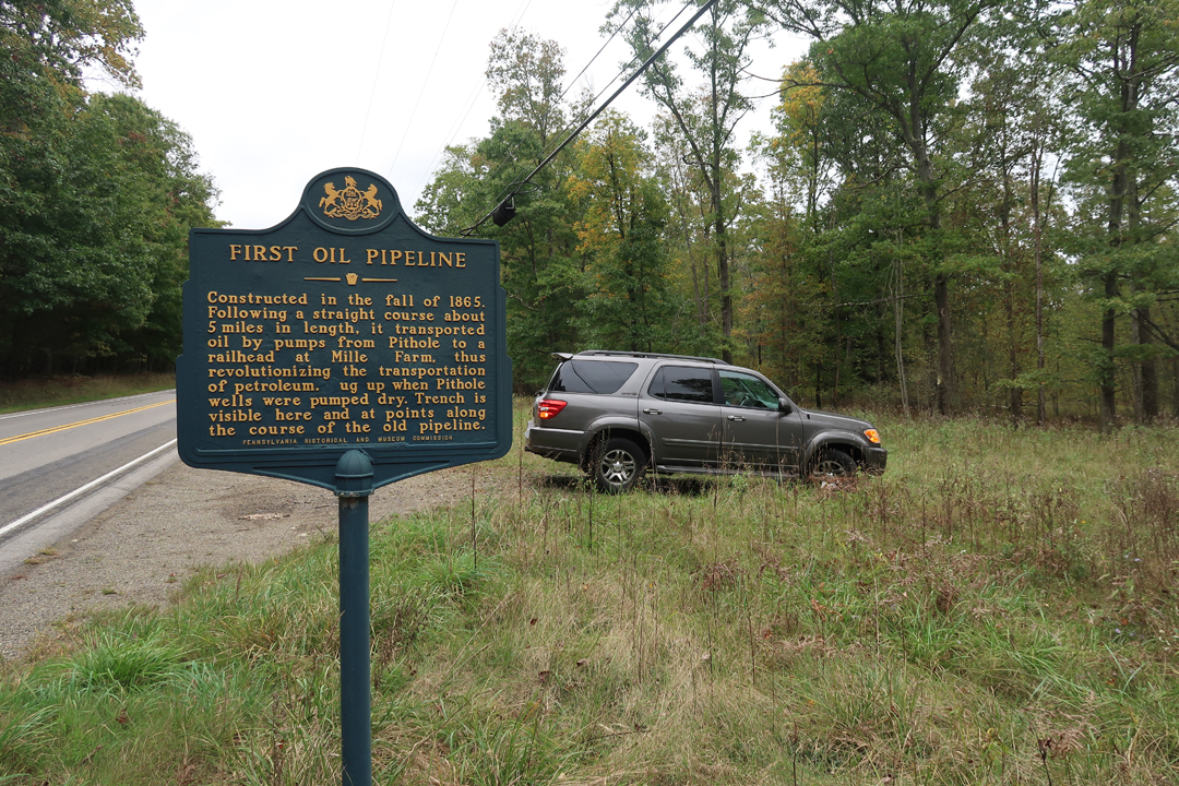 A 15-min ride on Rt 227 took us to this sign. The first oil pipeline (1865) was 5-miles in length and ran from Pithole City to the railroad in Miller Farm PA.