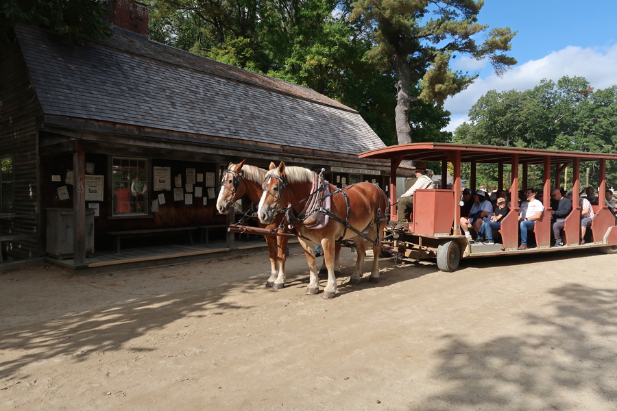 “Old Sturbridge Village is a living museum which recreates life in rural New England during the 1790s through 1830s. It is the largest living museum in New England, covering more than 200 acres. The Village includes 59 antique buildings, three water-powered mills, and a working farm. Third-person costumed interpreters demonstrate and interpret 19th-century arts, crafts, and agricultural work. The museum is popular among tourists and for educational field trips.” [Wikipedia]