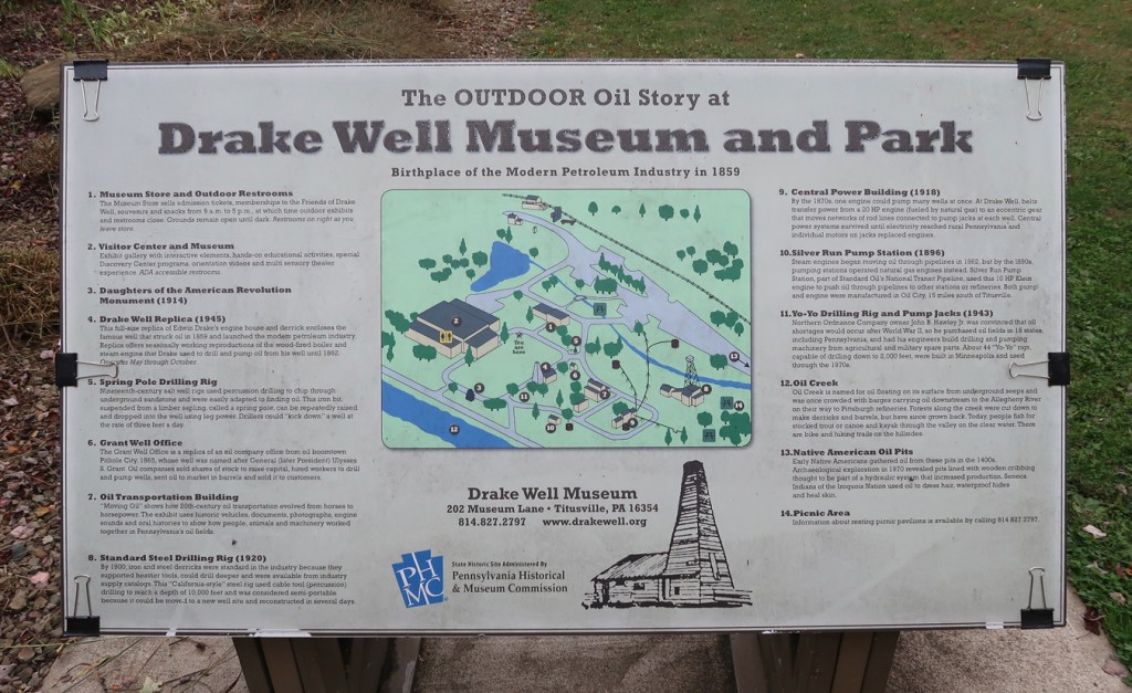 The Drake Well Museum and Park is only 20-min away just east of Titusville PA.