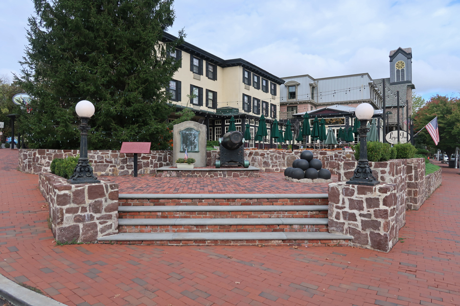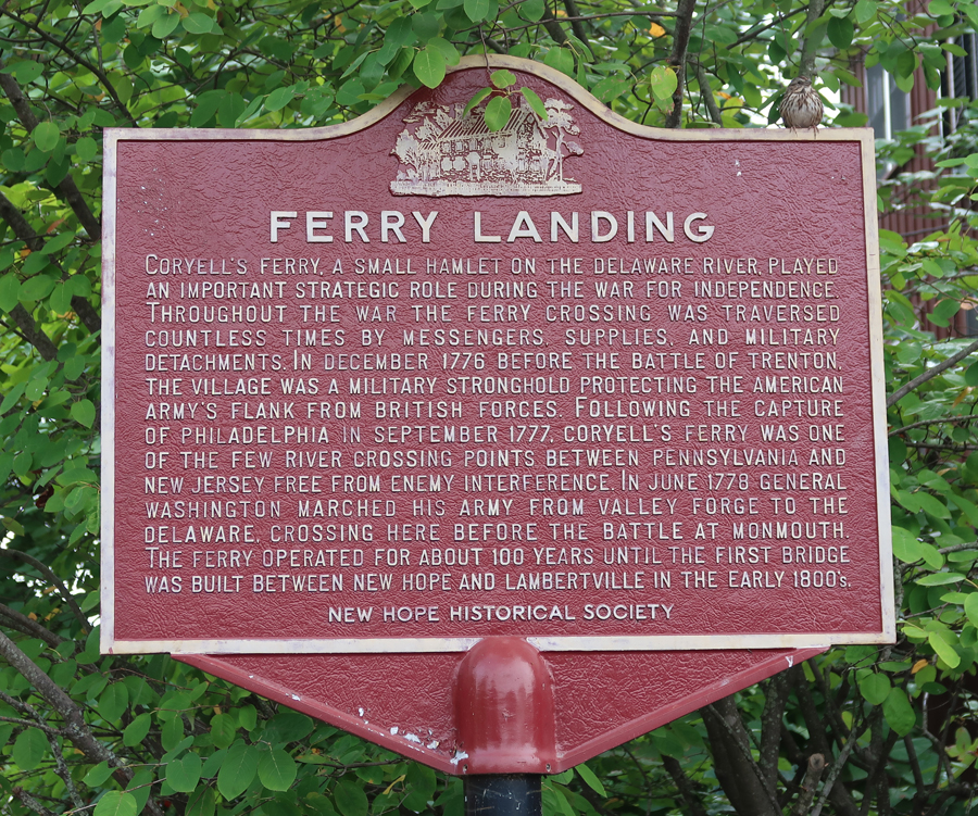 McConkey’s Ferry was on the west side of the Delaware River in PA, and Johnson’s Ferry was on the east side in NJ. This stone marks the general crossing area.