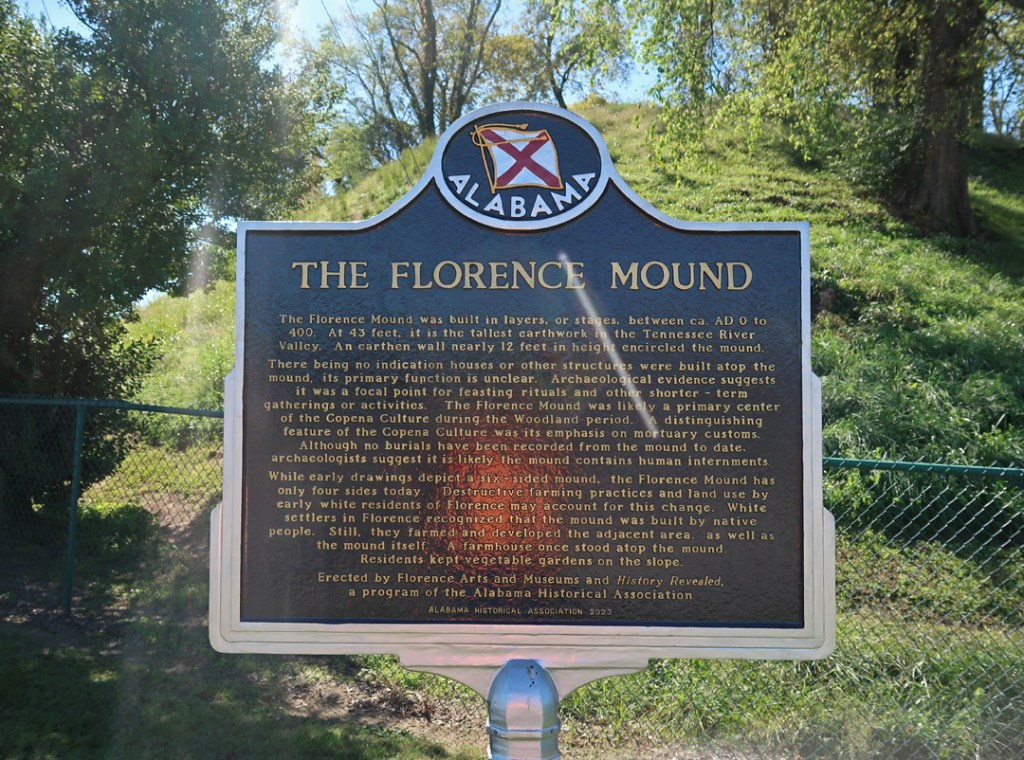 My fifth stop was the Florence Mound built 1700 years ago along the banks of the Tennessee River. “Used as a gathering space for ceremonies, the mound has withstood centuries of floods, storms, and human destruction. It stands today as a testament to the Indigenous people who lived in the Shoals for nearly 10,000 years.