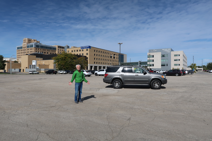 There are two banners and a sign on the fence on the east side of the parking lot of HSHS St John’s Hospital Women & Children’s Clinic.