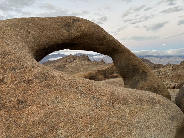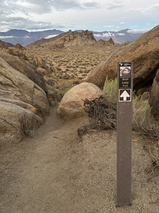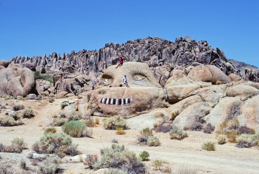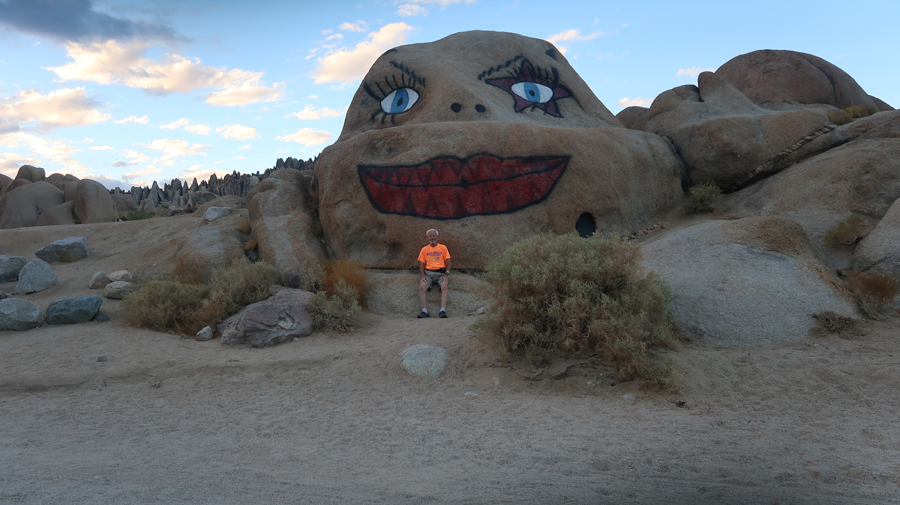 Drove 325-miles through Las Vegas and Death Valley NP to Lone Pine CA and the Alabama Hills National Scenic Area (BLM). I stopped at the painted “Monkey Head” on Whitney Portal Road just west of Lone Pine. The first pic is from 1992 with Manuel, our exchange student from the Canary Islands (Spain), on the monkey’s head and Chad leaning on his nose. The second photo is what it looks like today.