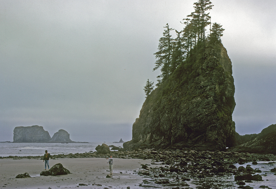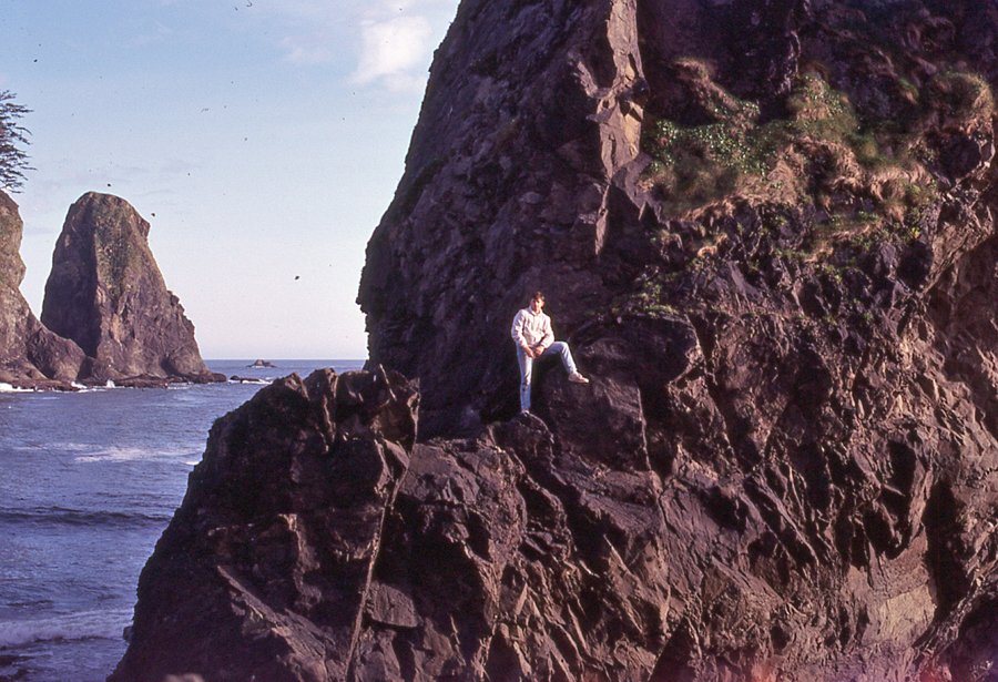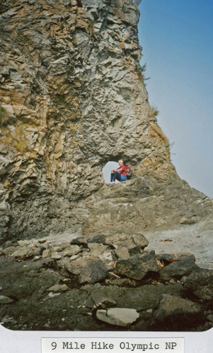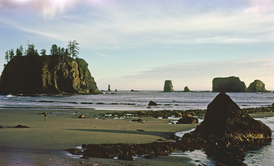 I have photos from three hikes along the coast in 1969. The first hike was a three-leg 9-mile hike that started from the Ozette Lake campground and went 3-miles to the ocean at Cape Alva. The second leg was a three-mile hike on the beach and over rocks to Sand Point, and the third was a 3-mile hike back to our campsite.