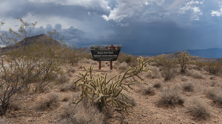 Entering Beaver Dam Wash NCA. Congress designated these 63,645 acres in the SW corner of UT a NCA in 2009 – storm ahead