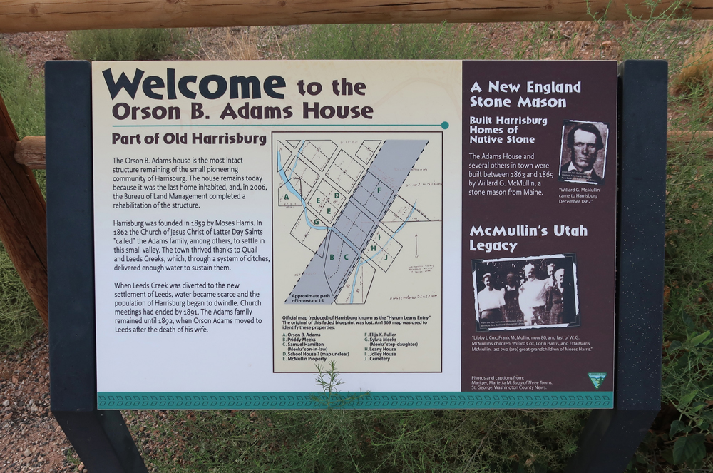 The Church of Jesus Christ of Latter Day Saints “called” Orson and Susann Adams and 41 others to move to this area in 1862. There family lived in this house from 1864 to 1892.