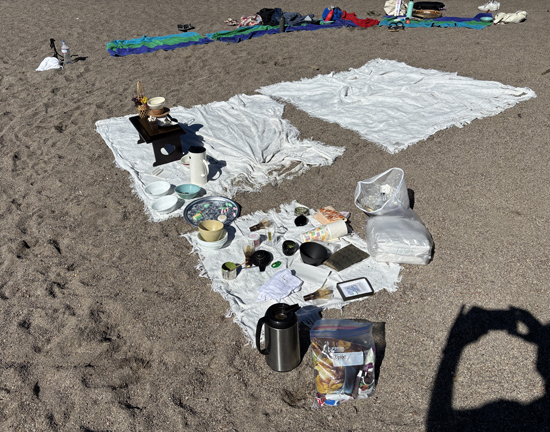 The Monk was giving individual blessings, and they were enjoying tea and symbolic snacks.