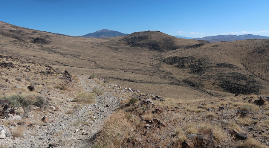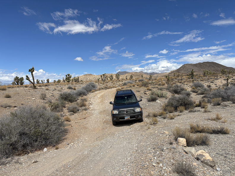 I continued for another half hour until I realized I was going south – the wrong direction! I turned around and headed back. When I got back to the Recreation Area, I stopped a state pickup truck going the other way to ask directions. That is how I met Ryan, the only person I saw for the four hours it took me to get to Black Mountain and then back to a NV state highway. He put an app on my phone that allowed me to track my location. I was now on my way to Black Mountain.