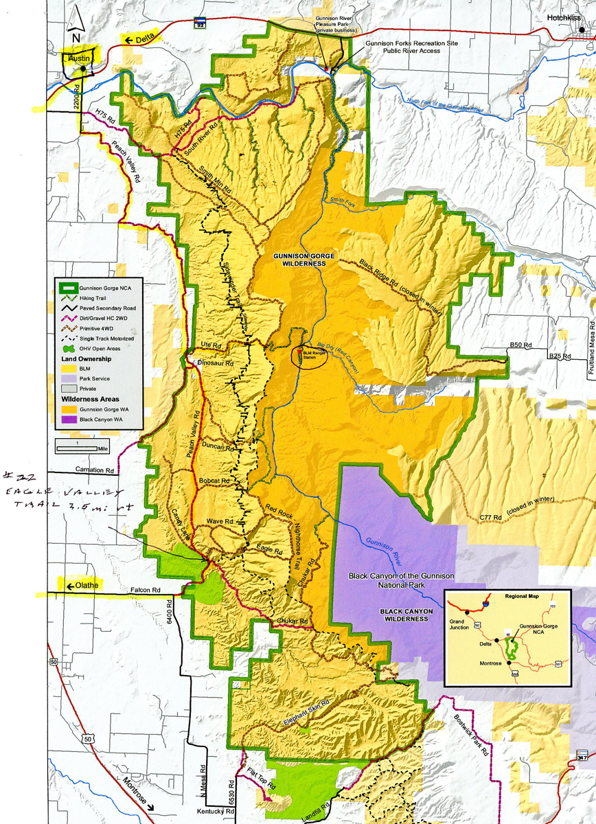 It took about an hour to drive SE to Delta CO and then on to Austin where I then drove S on Peach Valley Rd into Gunnison Gorge NCA and Wilderness.